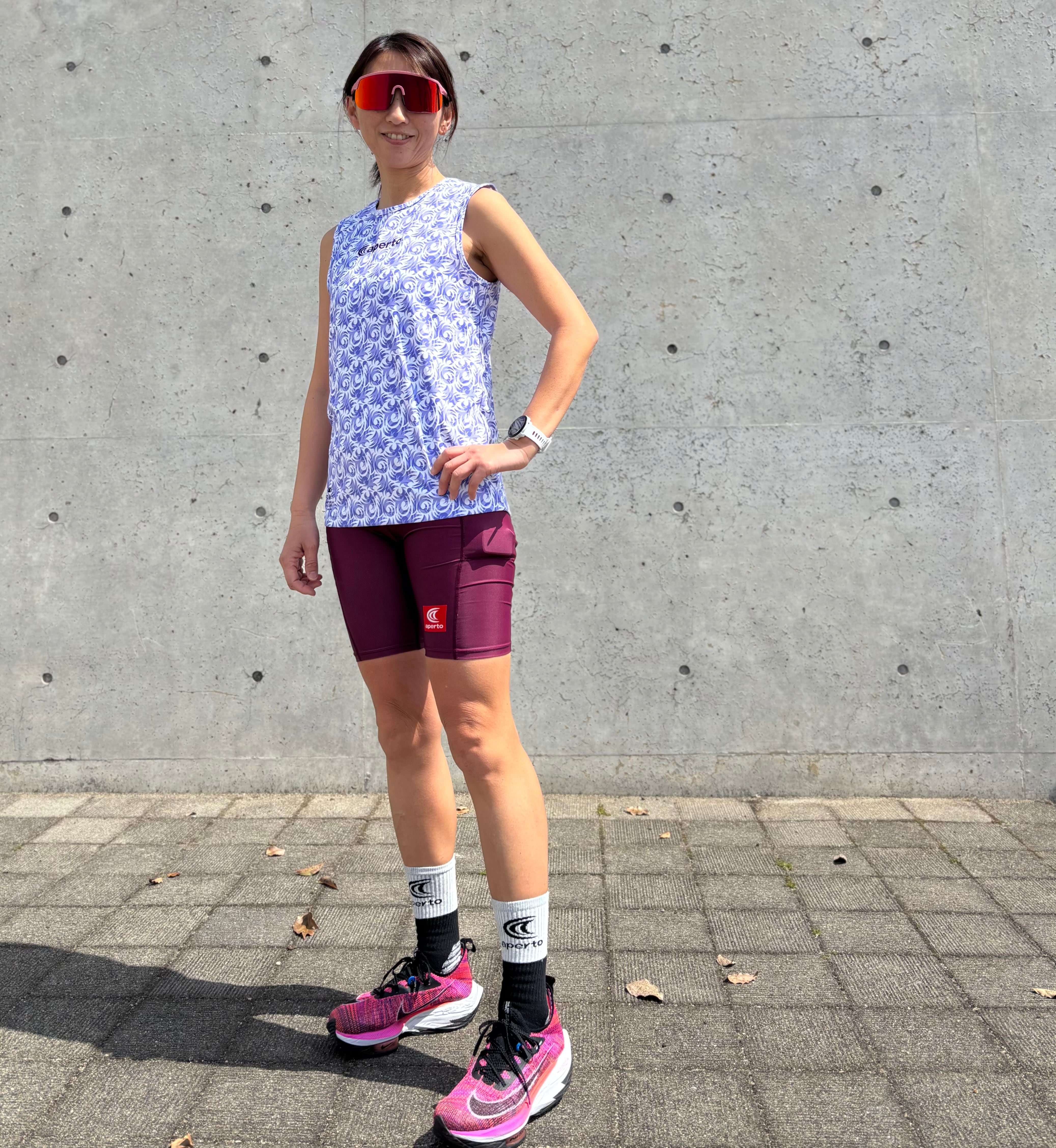 2025SS企画第一弾となるレディース企画です。上品で優しいパープルカラーは、春のランニングをお洒落に格好よく演出します。アペルトが誇る昇華プリントの開発で誕生した総柄で品のあるカラーは、洗濯による色褪せもご心配なく太陽光で綺麗に映えるクオリティの高さを感じて頂ける仕上がりになっております。