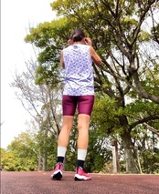 吸水速乾性や機能性の高い日本製ポリエステル機能素材を使用しています。表面は滑らかで肌さわりがよく、裏面はメッシュ組織になっていて吸水速乾性に優れています。ホワイト地ですが透けない素材のため安心してご着用頂けます。軽量で柔らかく伸縮性も高いため、長時間のランニングに適した動きやすい素材です。艶感がありきれいな表面のため、ボーダーの配色昇華プリントがハッキリと綺麗に映えます。