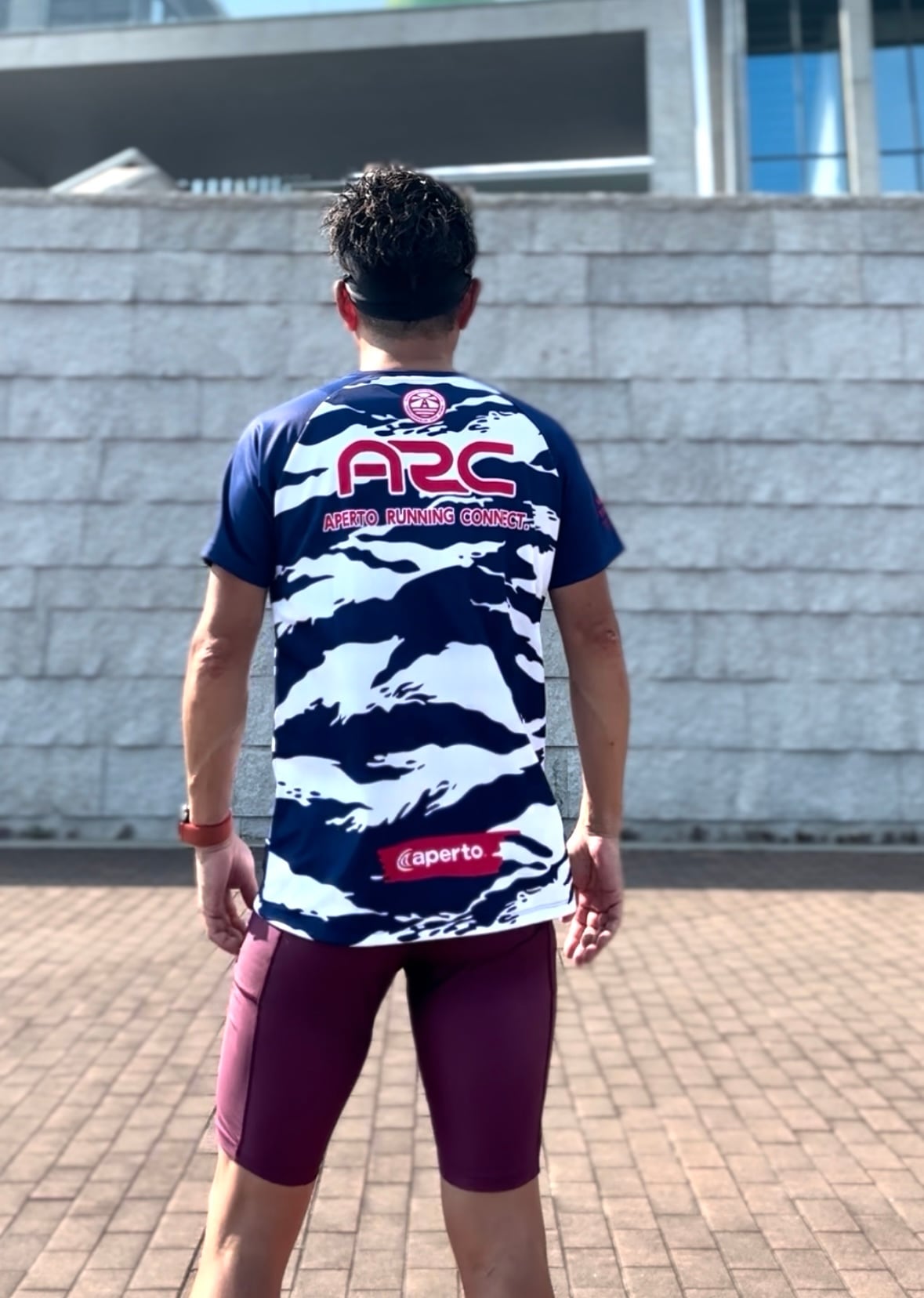 ARC(アペルトランニングコネクト)のレース用ウエアとして企画したクラウドフロー(颯爽と流れる雲柄)シリーズのTシャツになります。すっきりしたラグラン袖の仕様でタイツとのコーディネートにもピッタリなスタイリッシュTシャツです。レースから日常のランニングまで幅広いシーンでご愛用頂けるクラウド柄Tシャツは男女問わずご愛用頂けるアペルトお勧めの企画です。