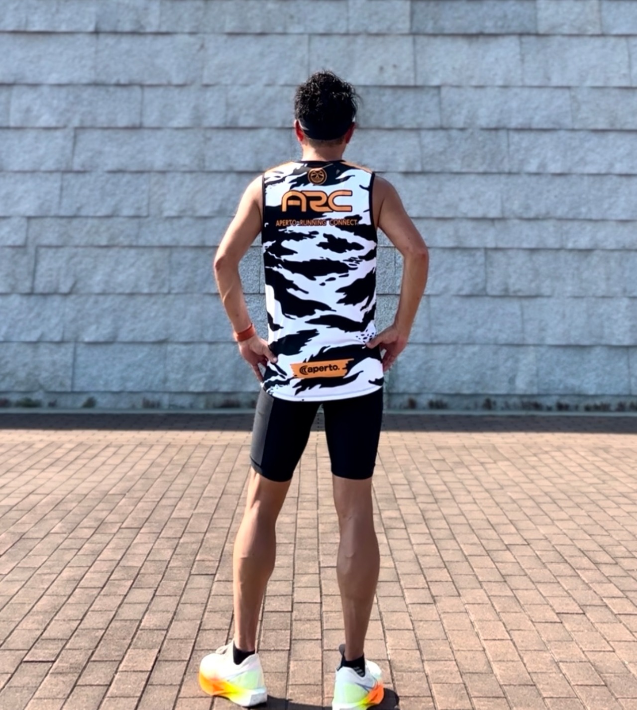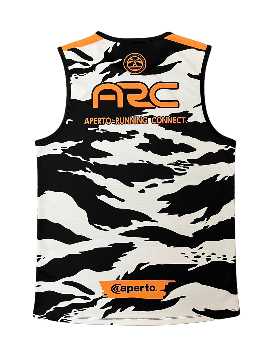 ARC(アペルトランニングコネクト)のレース用ウエアとして企画したクラウドフロー(颯爽と流れる雲柄)シリーズのノースリーブになります。襟開きもすっきりと仕上げてスタイリッシュなノースリーブは、レースから日常のランニングまで幅広いシーンでご愛用頂けます。ユニセックス企画のノースリーブで男女問わずご愛用頂けるアペルトお勧めの企画です。