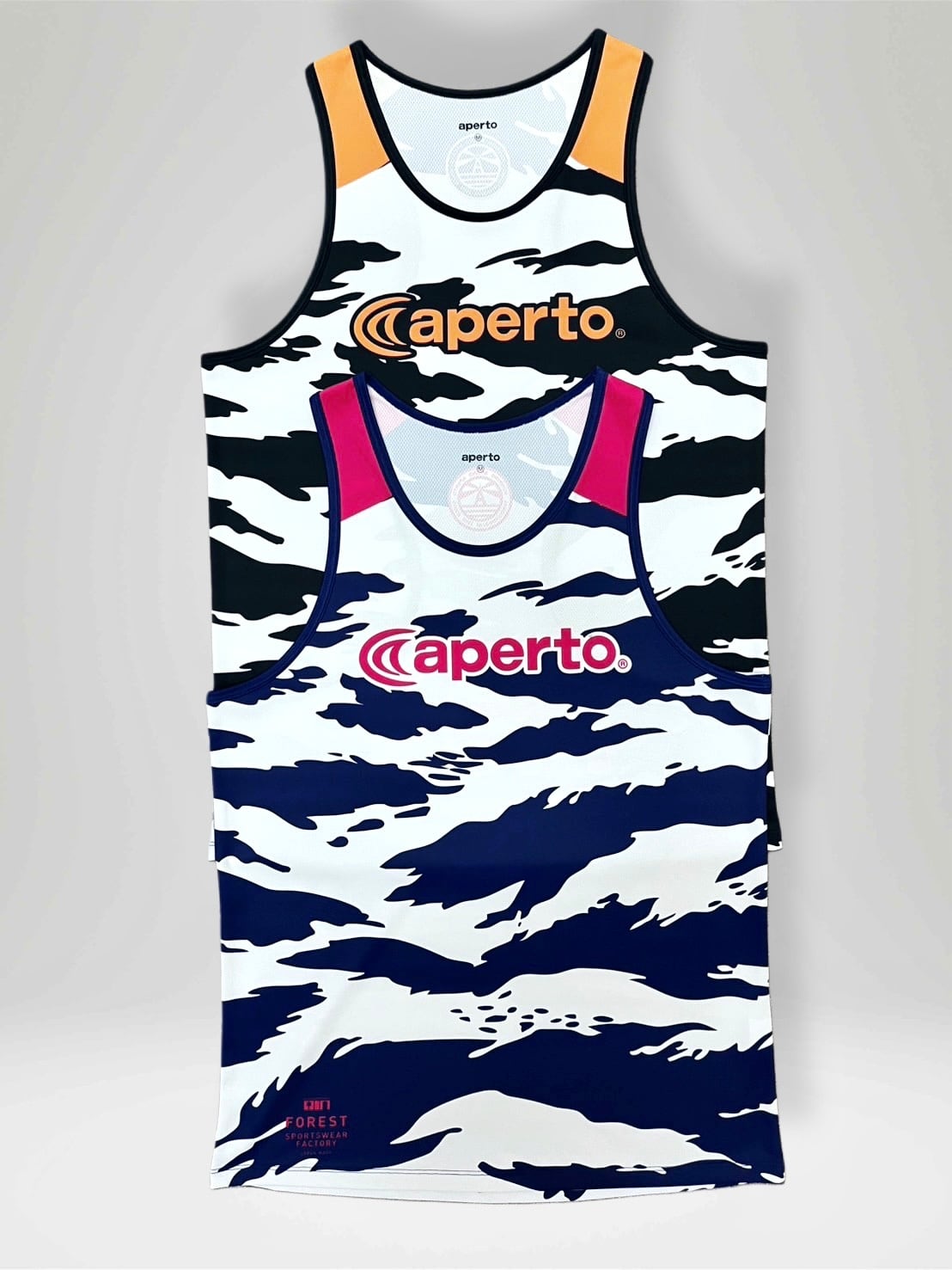 ARC(アペルトランニングコネクト)のレース用ウエアとして企画したクラウドフロー(颯爽と流れる雲柄)シリーズのシングレットになります。レース用本格ウエアとしてランナーらしいスタイリッシュに仕上げています。レース用シングレットとしてご愛用頂けるアペルトお勧めの企画です。