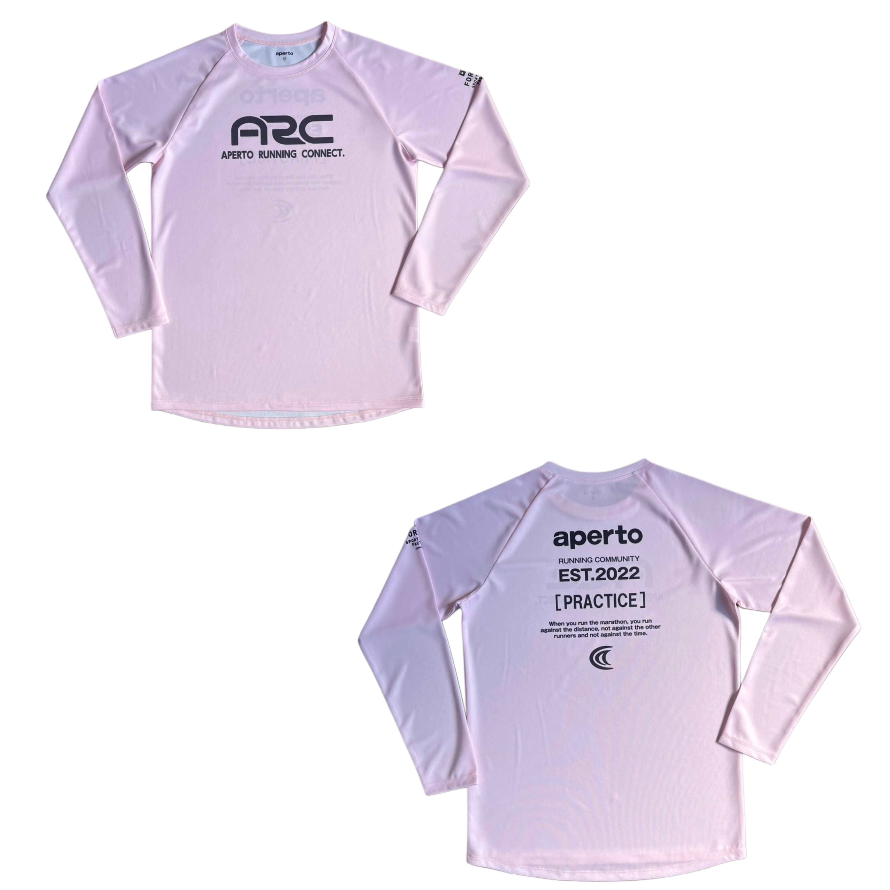 リニューアルしたARC(アペルトランニングコネクト)企画のロンTです。ラグラン袖の長袖でスタイリッシュなデザインです。裾は若干後ろを長く、前後差をつけており、緩やかなカーブにしております。着丈も少し長めにしており、パンツとの相性もよいスタイリッシュなデザインです。人気のアクティビティシリーズのARCモデルの長袖Tシャツです。ランニングはもちろんアフターや普段使いのロンTとしても着回しの効くデザインです。