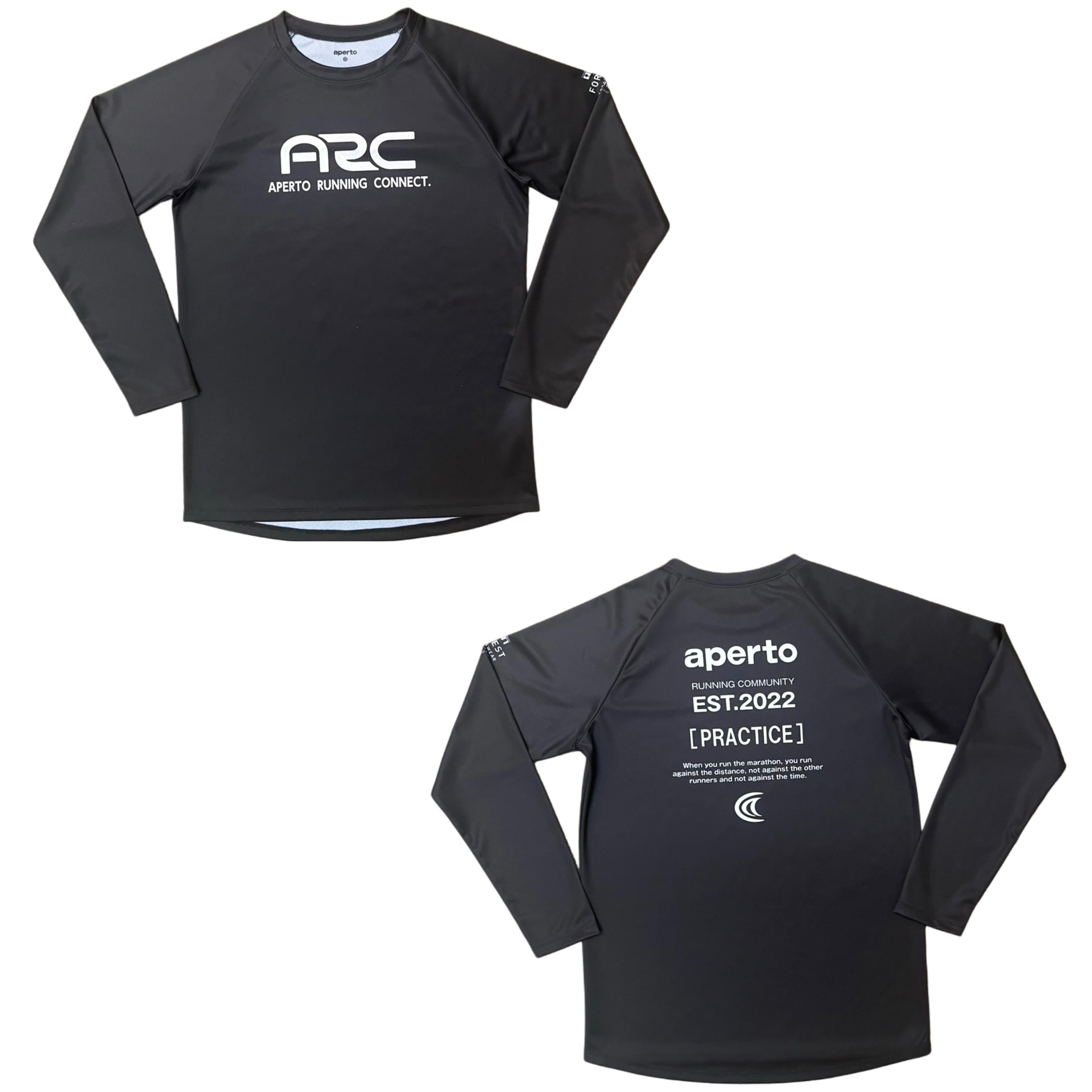 リニューアルしたARC(アペルトランニングコネクト)企画のロンTです。ラグラン袖の長袖でスタイリッシュなデザインです。裾は若干後ろを長く、前後差をつけており、緩やかなカーブにしております。着丈も少し長めにしており、パンツとの相性もよいスタイリッシュなデザインです。人気のアクティビティシリーズのARCモデルの長袖Tシャツです。ランニングはもちろんアフターや普段使いのロンTとしても着回しの効くデザインです。