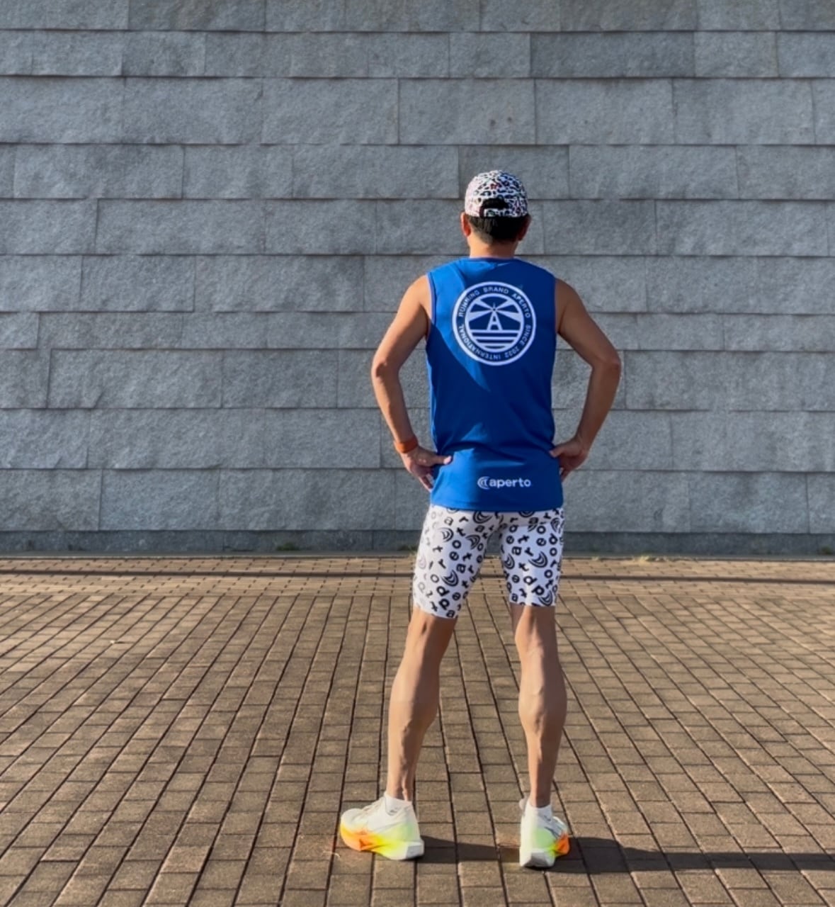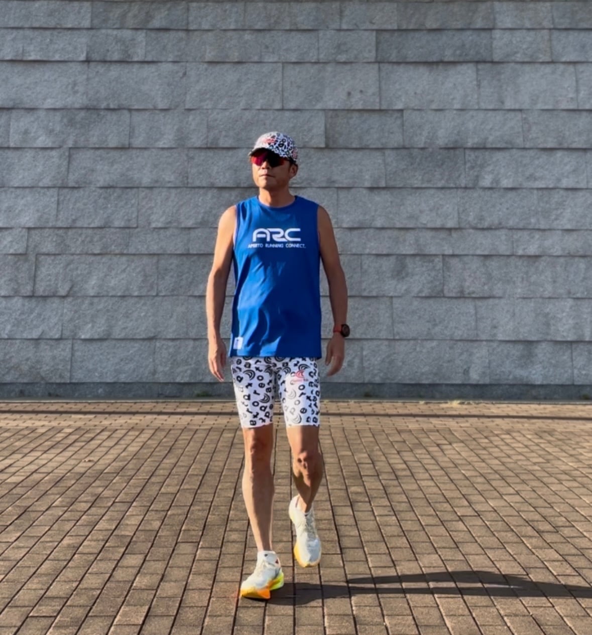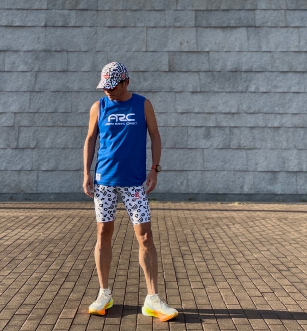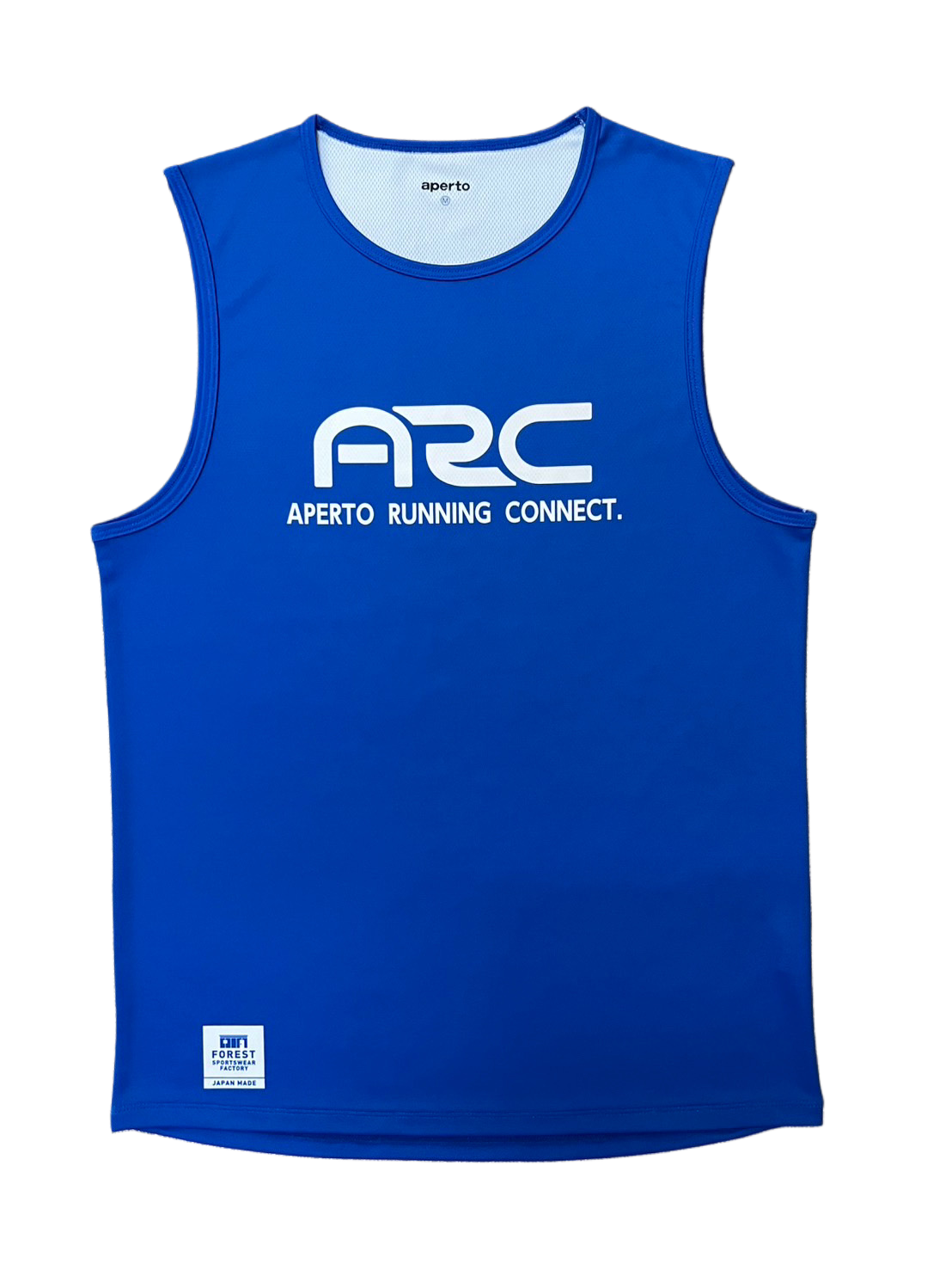 ニューアルしたARC(アペルトランニングコネクト)企画のノースリーブです。襟も開きすぎずスタイリッシュなデザインにしています。アドバンスタイツとの相性もよい着丈バランスでスポーティーなノースリーブです。