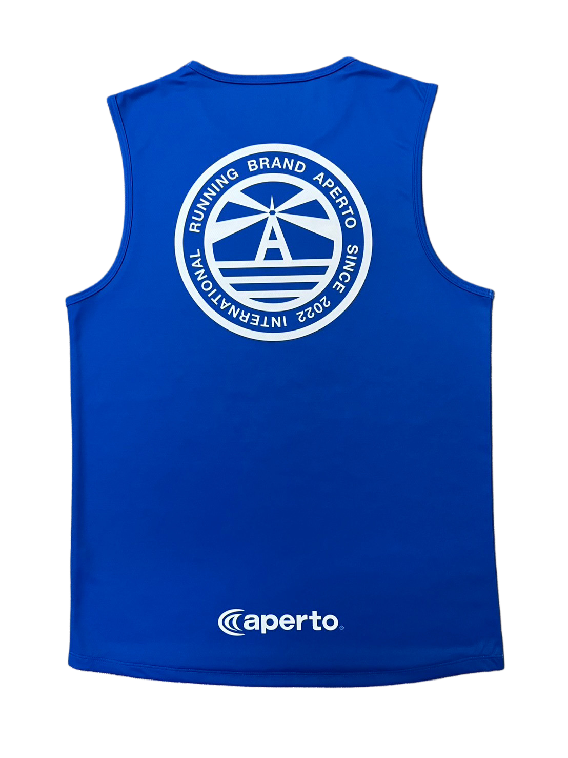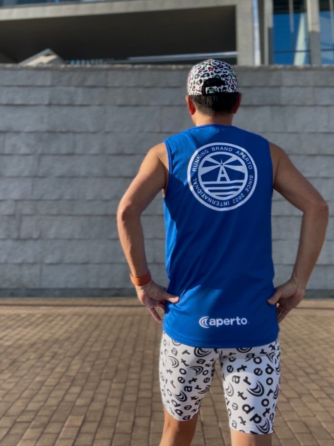 自社全昇華プリントによってカラー開発された鮮やかなブルーです。艶やかで華やかさのあるブルーはタイツとのスタイリングによりお洒落なランニングスタイルを演出します。
