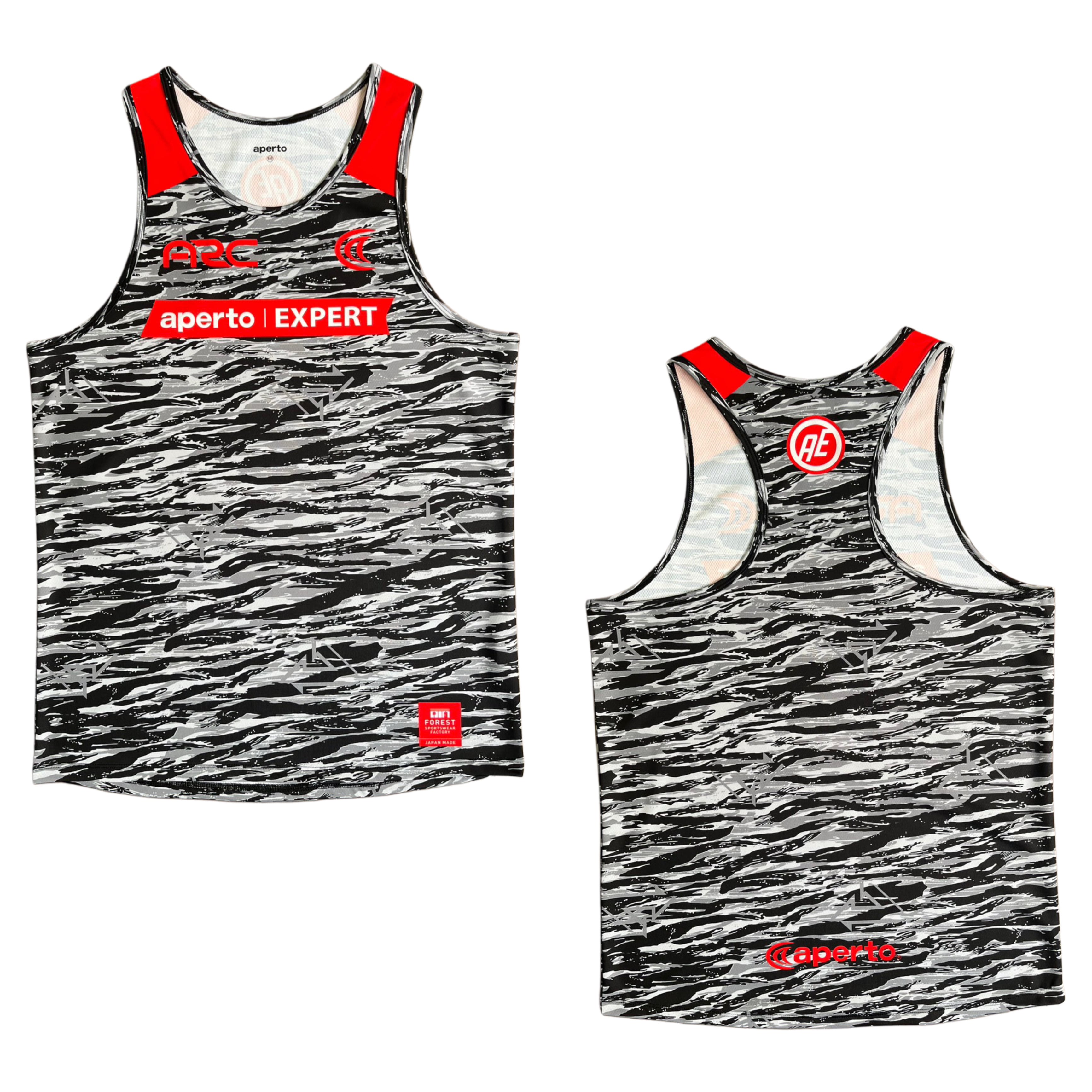 アペルトエキスパート企画のレーシングシングレットです。ブラックの霧柄をベースに、ショルダーはレッドでアクセントをつけた、スタイリッシュなデザインです。日本人の体型にフィットするように自社でパターンを開発して、一貫してメイドインジャパンでプロデュースした本格的なレース用シングレットです。アペルトエキスパートお勧めのシングレットです。