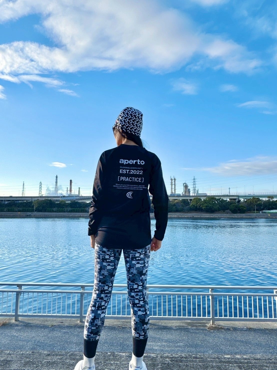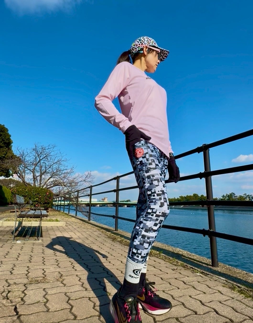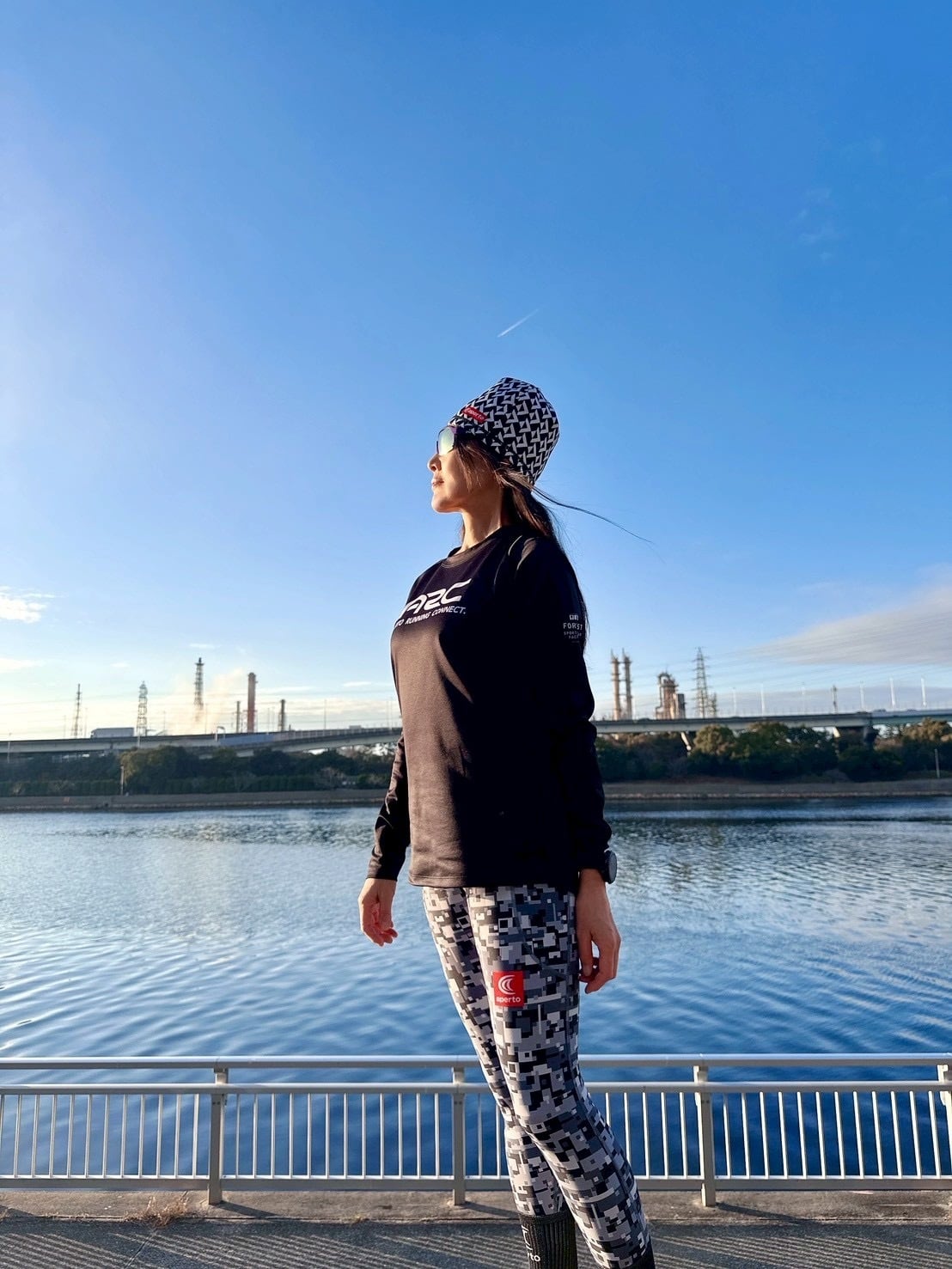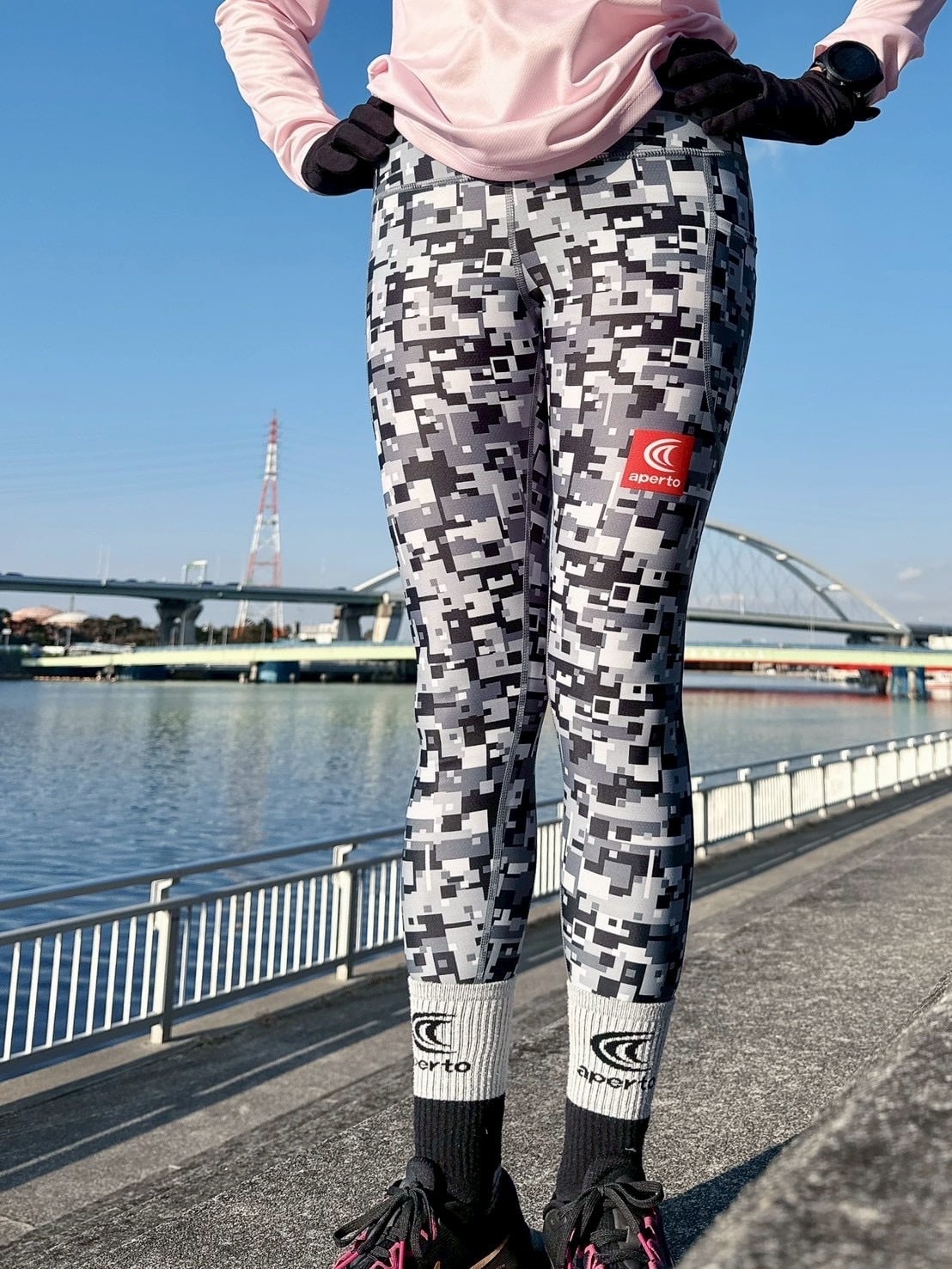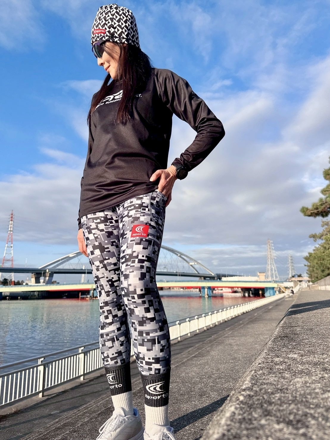 ウエスト切替を設けて、ヒップから腰回りまで優しく包み込むようにサポートします。骨盤をサポートする仕様で長時間のランニングにも適しています。特殊オペロンゴムを使用して着脱のしやすい仕様にしています。裾にかけてシェイプしているパターン(型紙)で脚の形に沿って締めつけもきつすぎずに、しっかりフィットします。