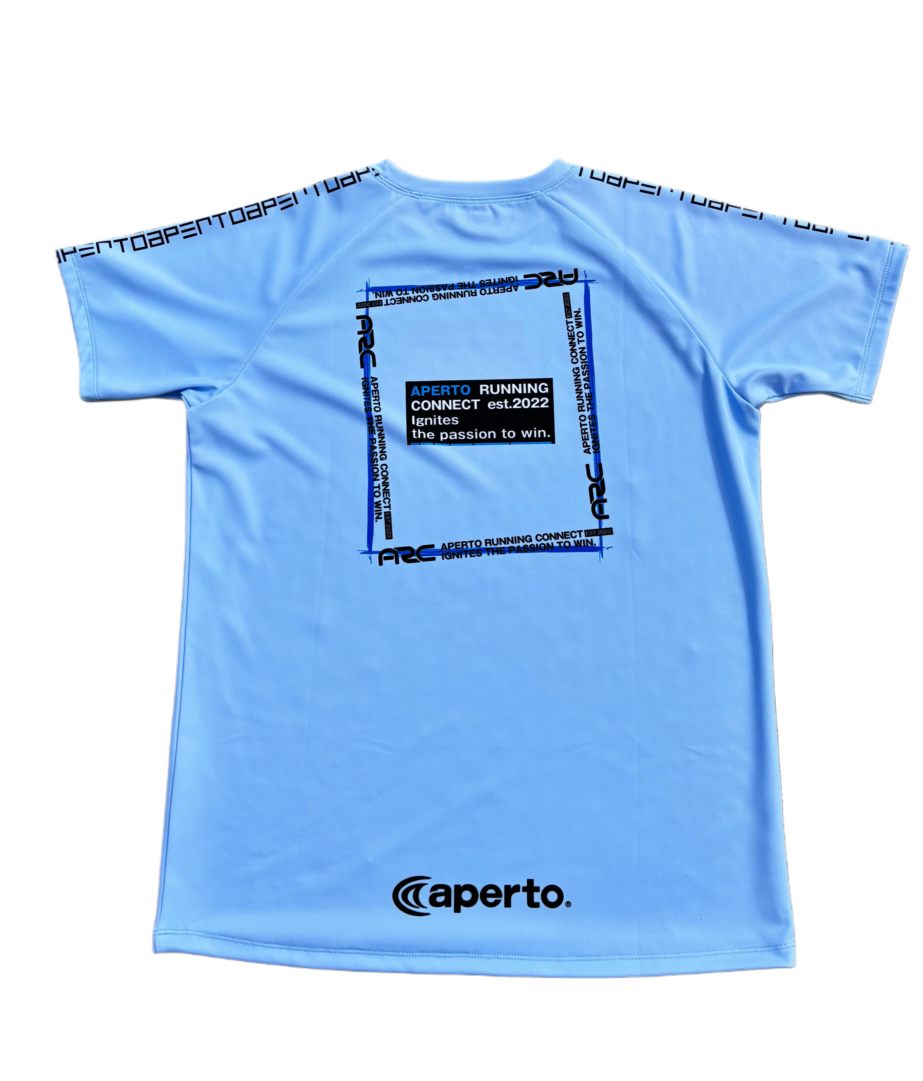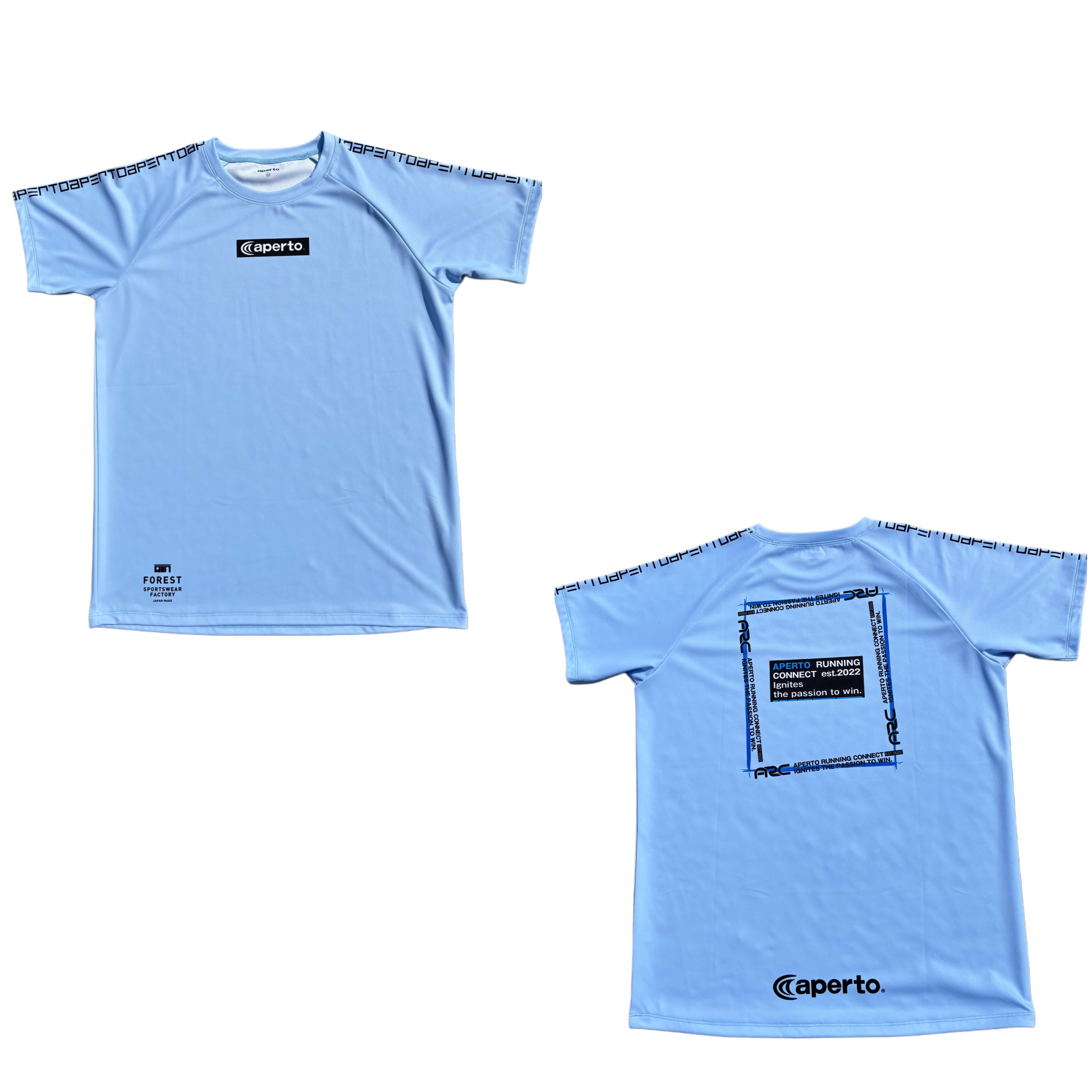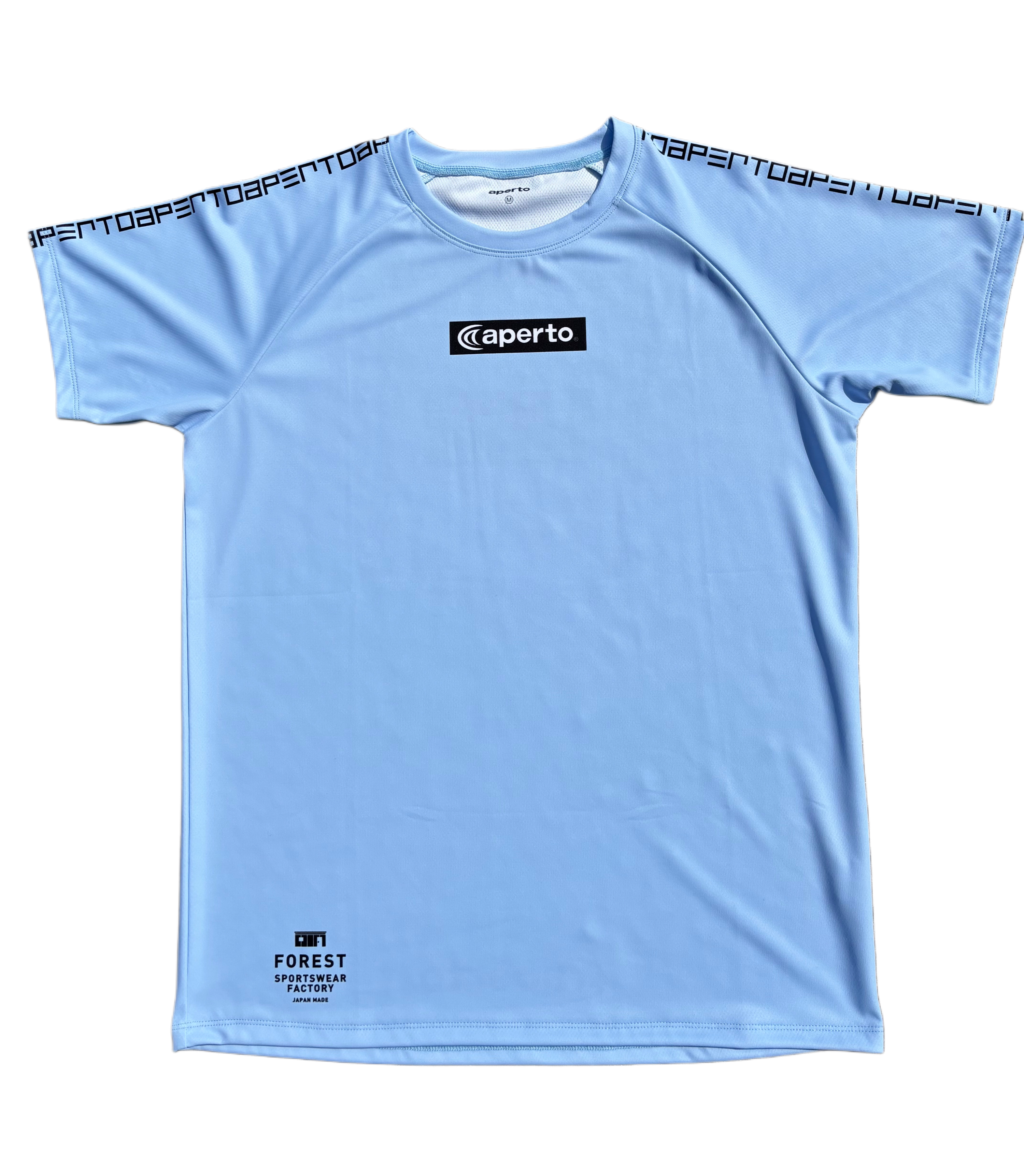 バックにロゴをお洒落にアレンジしたスタイリッシュなラグランTシャツになります。肩にはapertoの文字をデジタルに配置してアレンジしています。春らしいライトブルーの爽やかなカラーは、男女問わずご愛用頂けます。アペルトが自社でパターン(型紙)したラグランスリーブは、動きやすく、すっきりとした見え感でありながら、着やすい設計がご支持いただけております。