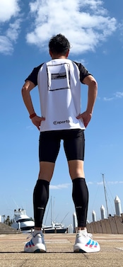 吸水速乾性や機能性の高い日本製ポリエステル機能素材を使用しています。表面は滑らかで肌さわりがよく、裏面はメッシュ組織になっていて吸水速乾性に優れています。軽量で柔らかく伸縮性も高いため、長時間のランニングに適した動きやすい素材です。艶感がありきれいな表面のため、ロゴも褪せる事なく綺麗に映えます。