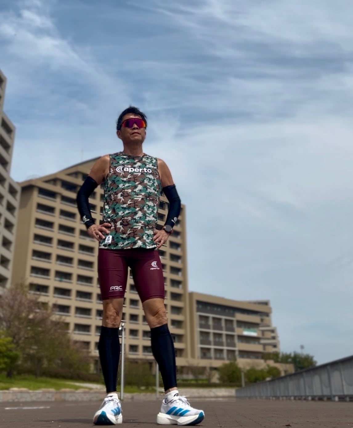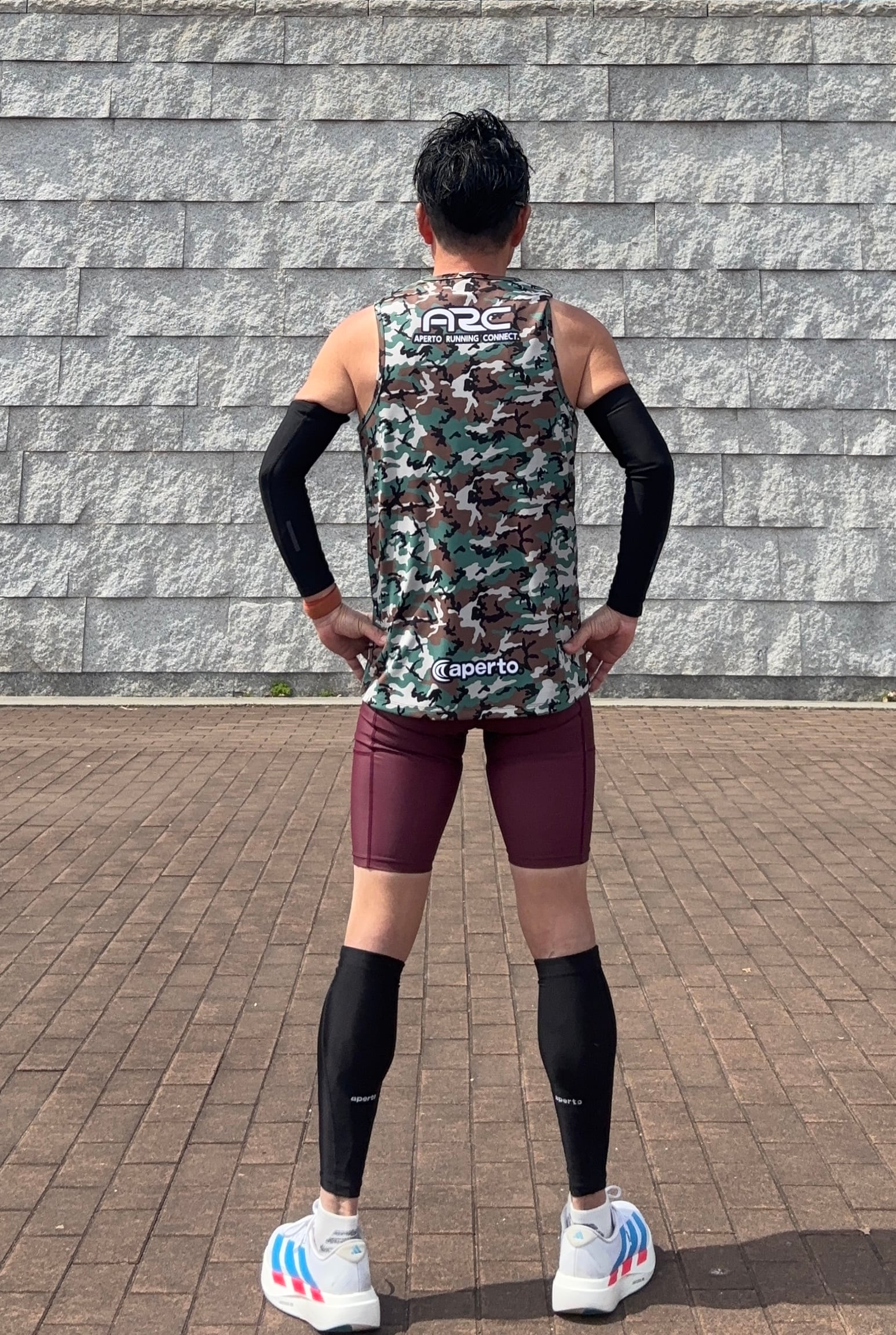 繊細なカモ柄を自社全昇華で開発したノースリーブになります。ロードからトレイルまで幅広く活躍するアイテムです。前面にアペルトロゴと背面にARCロゴをアレンジしています。全昇華プリントによって開発された柄は太陽光に映え、タイツとのスタイリングによりお洒落なランニングスタイルを演出します。これからの季節にピッタリなお勧めアイテムです。