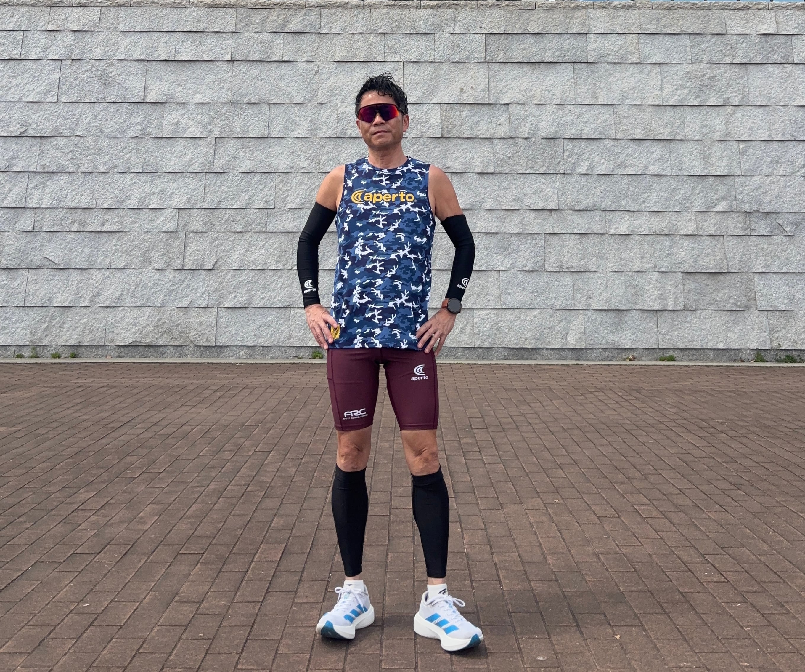吸水速乾性や機能性の高い日本製ポリエステル機能素材を使用しています。表面は滑らかで肌さわりがよく、裏面はメッシュ組織になっていて吸水速乾性に優れています。軽量で柔らかく伸縮性も高いため、長時間のランニングに適した動きやすい素材です。艶感がありきれいな表面のため、ロゴも褪せる事なく綺麗に映えます。