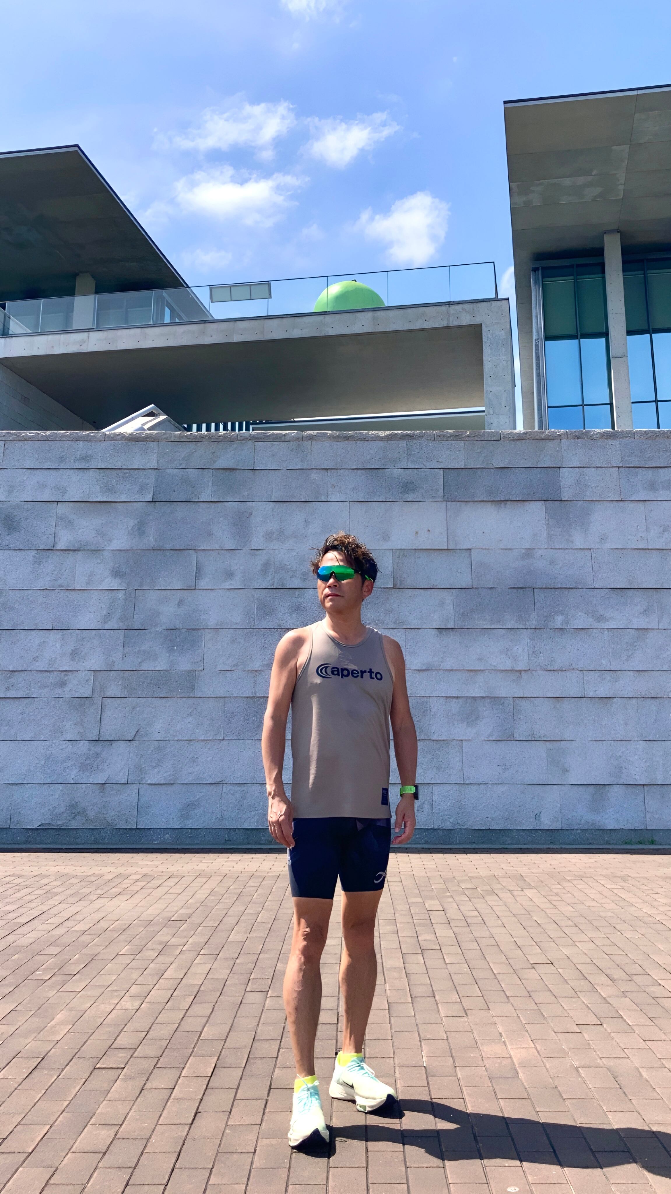 アペルトオリジナルでパターンしたタンクトップです。ランナーらしいスタイリッシュな設計にしております。襟開き、袖開きは大きすぎず、スッキリしており、屈んでも胸元を気にしないで安心してご着用頂けます。裾は若干後ろを長く、前後差をつけており、緩やかなカーブにしております。着丈も少し長めにしており、パンツとの相性もよいスタイリッシュなデザインです。ビンテージ風にエンブレムを後ろにデザインしたお洒落なタンクトップです。落ち着いたサンドベージュは大人のランニングスタイルを格好よく演出します。