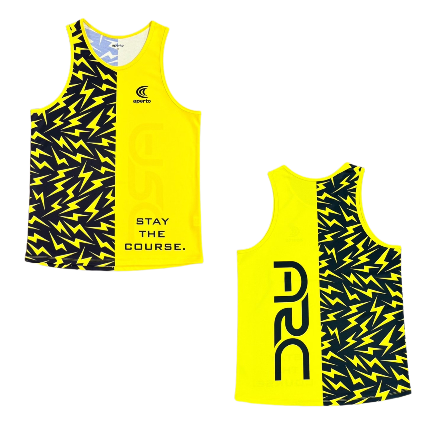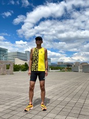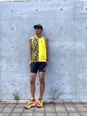 アペルトオリジナルでパターンしたタンクトップです。ランナーらしいスタイリッシュな設計にしております。襟開き、袖開きは大きすぎず、スッキリしており、屈んでも胸元を気にしないで安心してご着用頂けます。裾は若干後ろを長く、前後差をつけており、緩やかなカーブにしております。着丈も少し長めにしており、パンツとの相性もよいスタイリッシュなデザインです。ボルト柄と無地をはっきりと切り替えた、軽快な印象のタンクトップです。後ろにはアペルトランニングクルーのARCロゴをデザインしています。これからレースが本格的に始まるシーズンにむけて、活躍するレーシングタンクトップです。