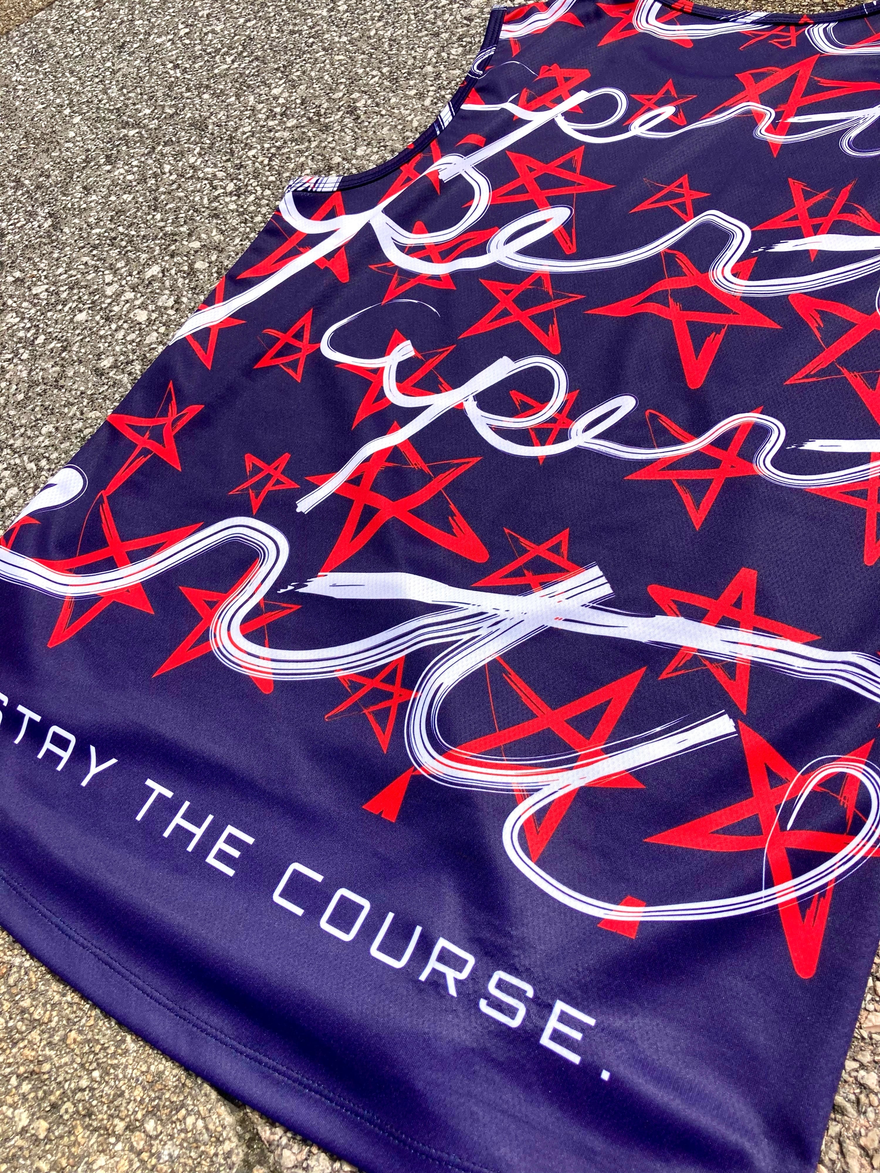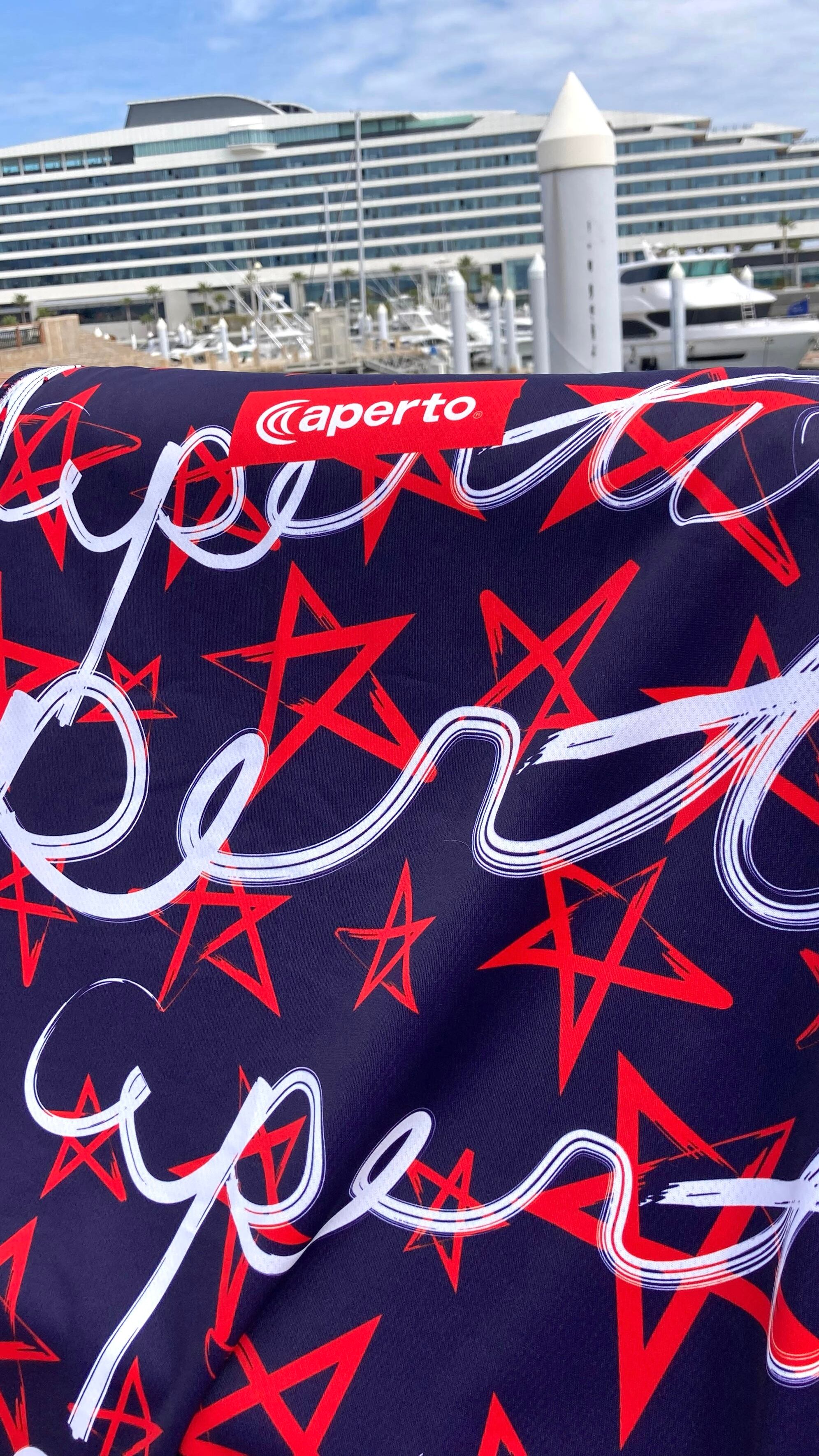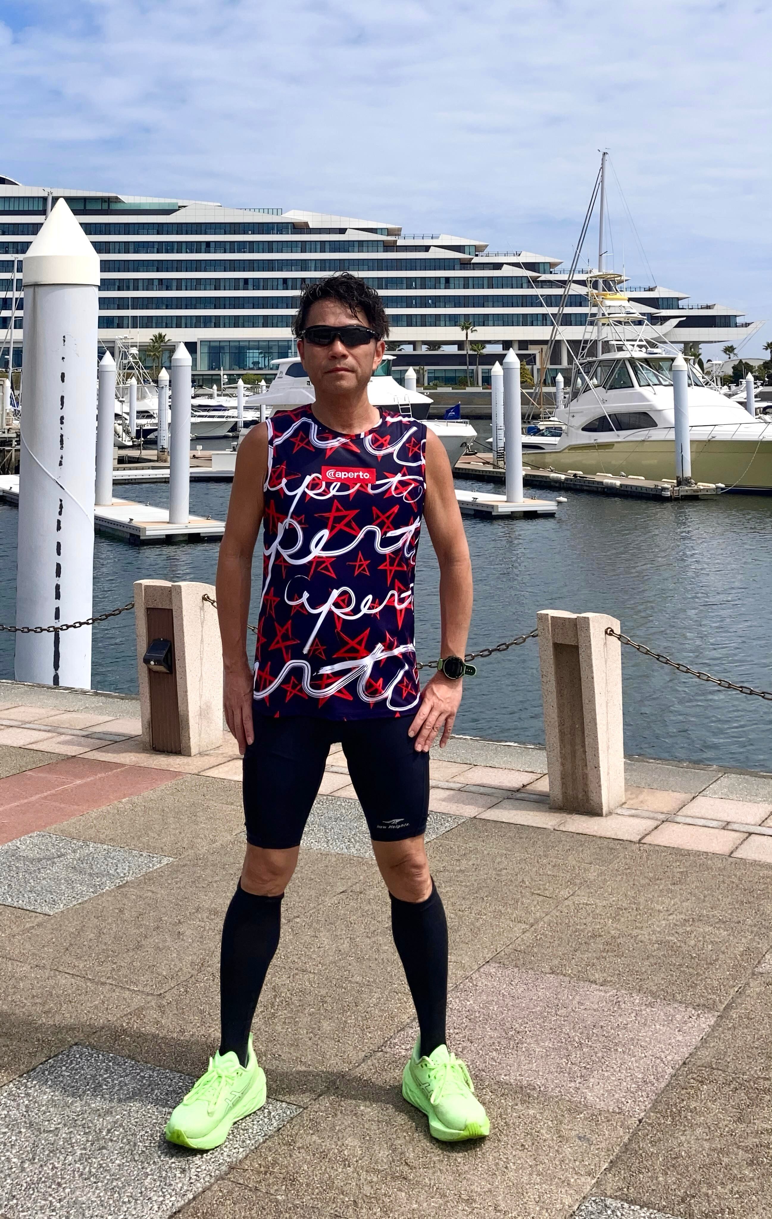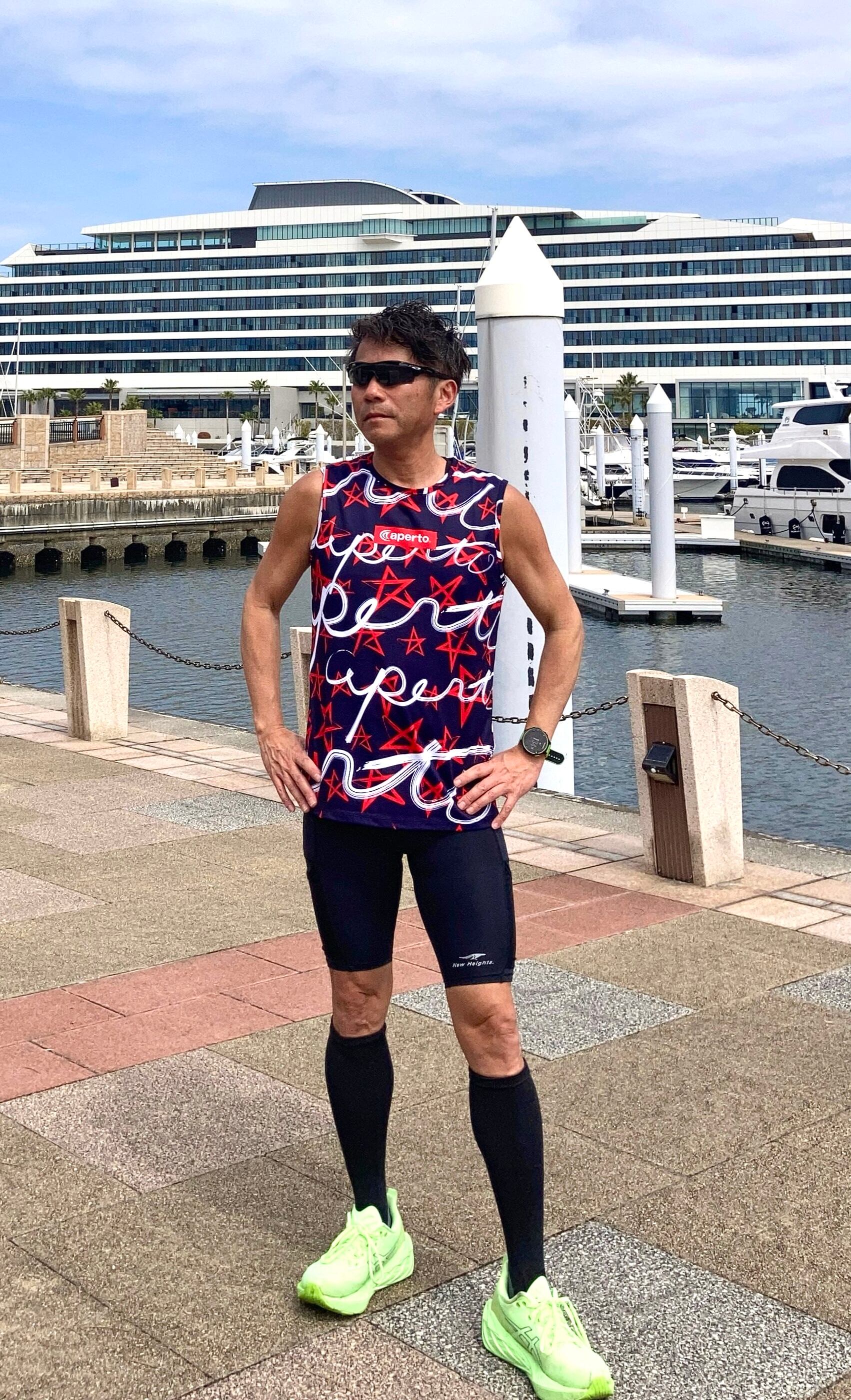 スタイリッシュなパターンのノースリーブです。襟開きも大きすぎないため、すっきりと見えて、屈んでも胸元を気にしないで安心してご着用頂けます。裾は若干後ろを長く、前後差をつけており、緩やかなカーブにしておりパンツとの相性もよいスタイリッシュなデザインです。人気のランダムスター柄にアペルトのサインをアレンジしたお洒落なデザインです。1枚毎に作成するパネル昇華プリントだから表現できる差別化されたデザインです。レースではもちろん、街ランやリゾート地でのランニングにもピッタリなお洒落で格好よいノースリーブです。男女問わずお勧めのデザインです。