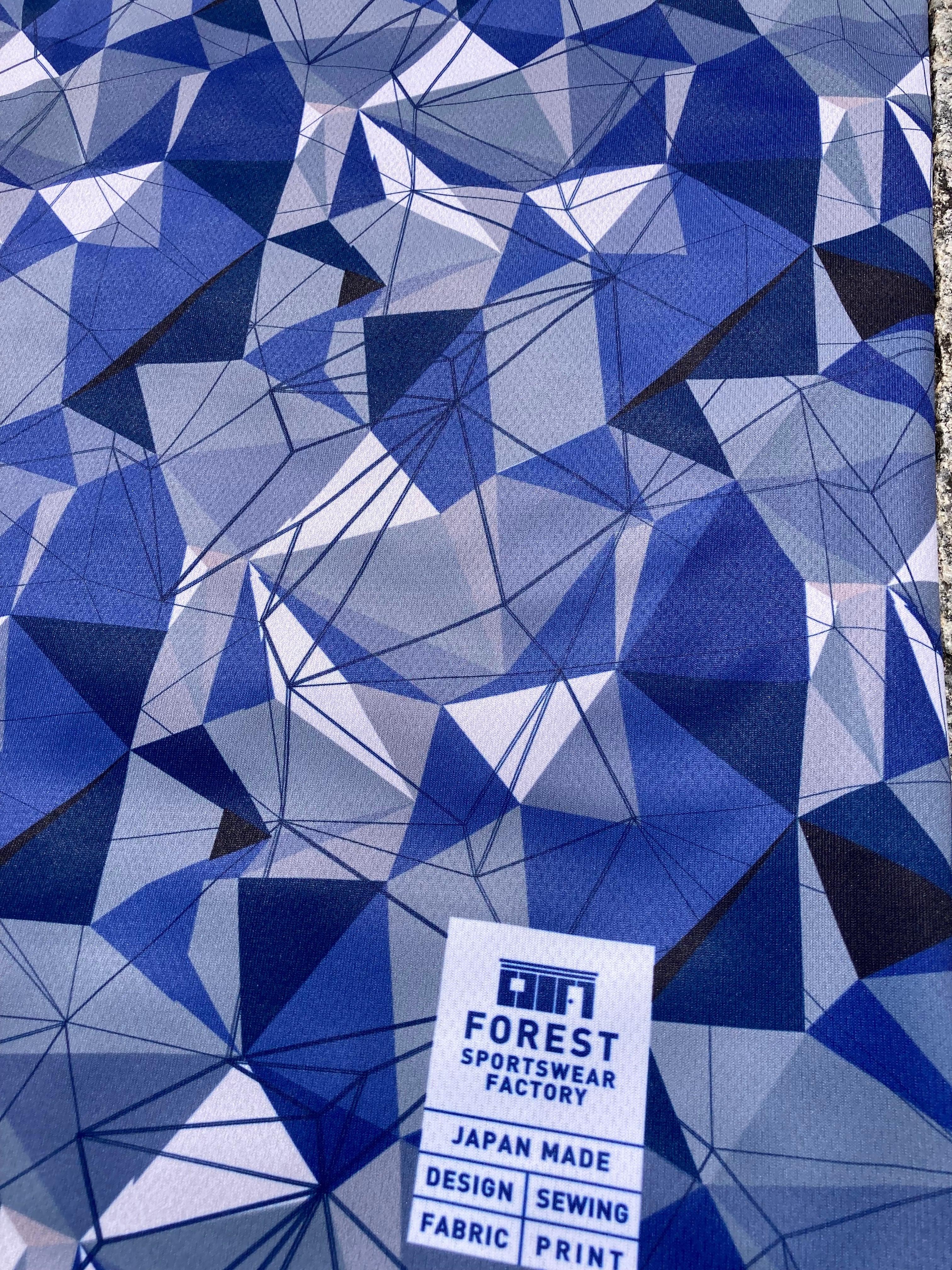 昇華パネル技法で、一着毎にプリントしています。アペルトで開発したカラーを高画質プリンターで、高純度用紙に図案を一枚毎にプリントして、高温装置で生地に昇華転写します。繊維に直接プリントするので、色あせすることがなく、太陽光にも強く、綺麗に映えます。アペルトが長年培ってきた、ポリエステルの厳選されたスポーツウエアに適したプリント法です。プリントした生地を1枚1枚丁寧に裁断して、自社工場で縫製・仕上げをしています。一貫した自社国内生産のご満足頂ける品質でお届けします。