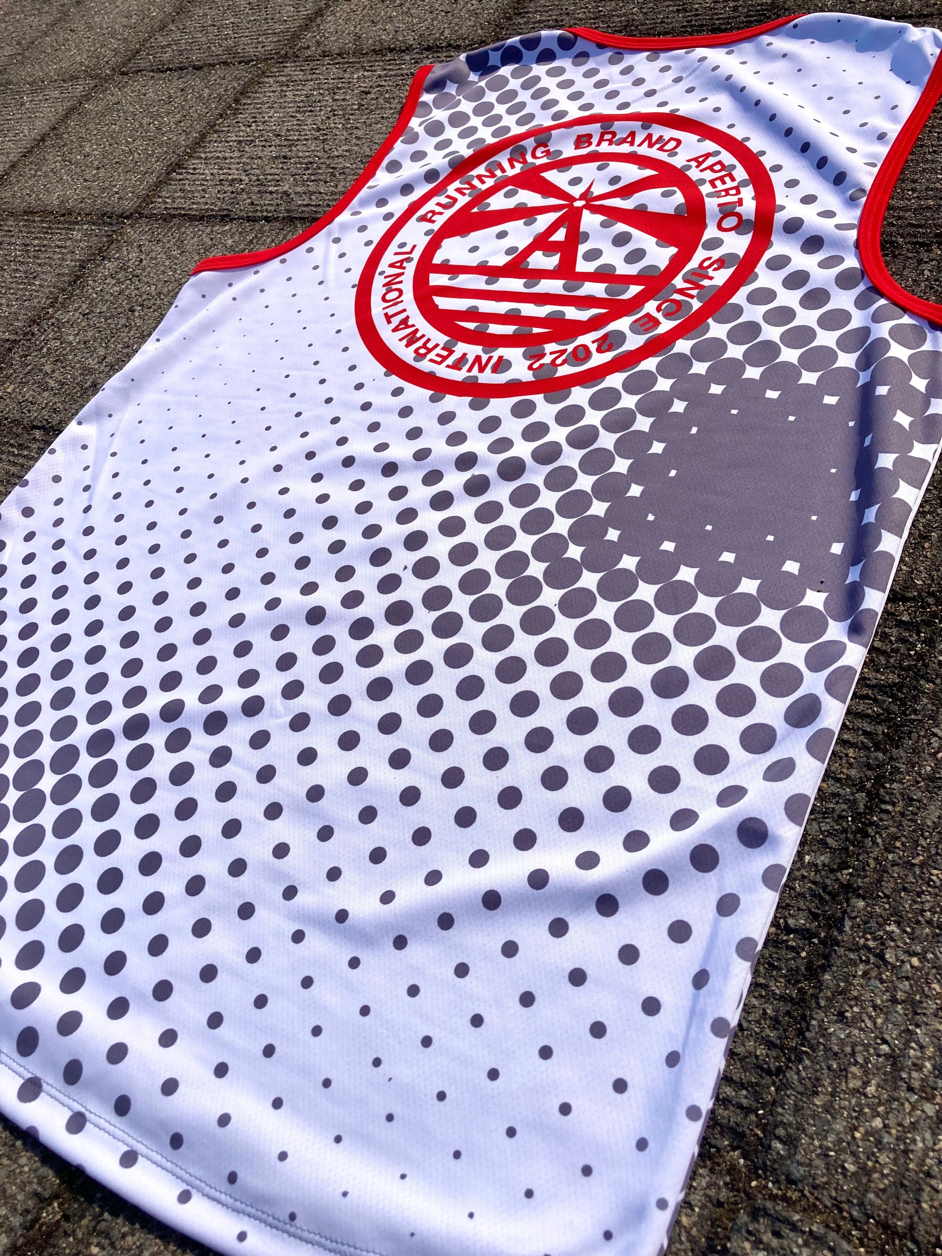 昇華パネル技法で、一着毎にプリントしています。アペルトで開発したカラーを高画質プリンターで、高純度用紙に図案を一枚毎にプリントして、高温装置で生地に昇華転写します。繊維に直接プリントするので、色あせすることがなく、太陽光にも強く、綺麗に映えます。アペルトが長年培ってきた、ポリエステルの厳選されたスポーツウエアに適したプリント法です。プリントした生地を1枚1枚丁寧に裁断して、自社工場で縫製・仕上げをしています。一貫した自社国内生産のご満足頂ける品質でお届けします。