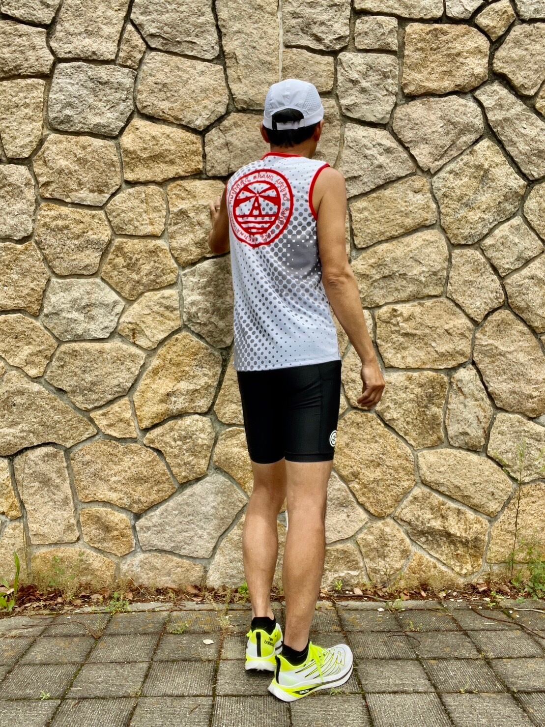 吸水速乾性が高くUV加工の日本製ポリエステル機能素材を使用しています。表面はサラッとした肌触りのよい滑らかな組織で、内側がメッシュ組織の、表裏で違う組織になっています。そのため、汗をかいてもベタツキにくく、通気性と速乾性に優れた機能素材です。柔らかい風合いで伸縮性も高く、ランニングに適した動きやすい素材です。表面がきれいなため昇華プリントがハッキリと綺麗に映えます。