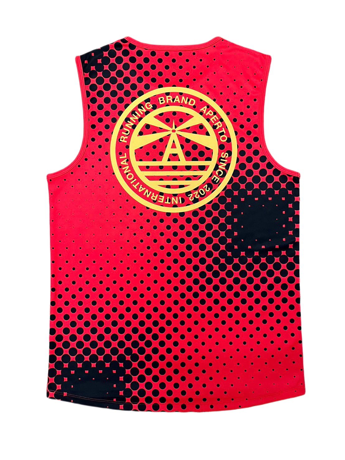 デジタル図案でランダムにアレンジされたドットがお洒落なデザインになっています。バックには存在感のある灯台ロゴがアレンジされています。カラー調整をして一枚一枚デザインをそのまま昇華パネル染めプリントして生産するアペルトの魅力あふれるデザインになっております。これからの季節にお勧めのノースリーブです。